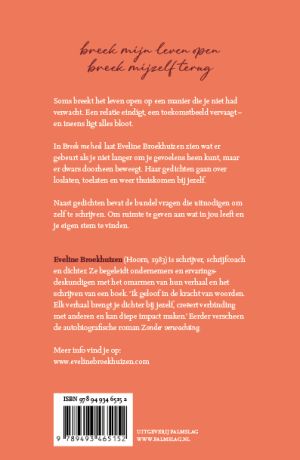 In ‘Breek me heel’ laat Eveline Broekhuizen zien wat er gebeurt als je niet langer om je gevoelens heen kunt, maar er dwars doorheen beweegt. Haar gedichten gaan over loslaten, toelaten en weer thuiskomen bij jezelf.